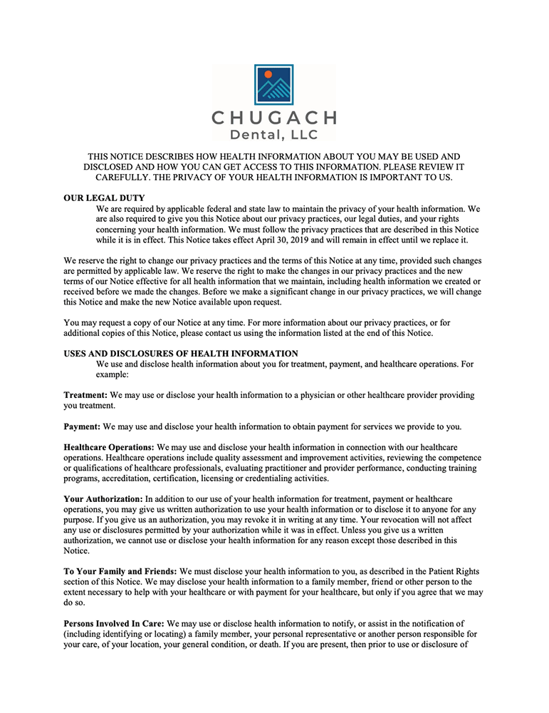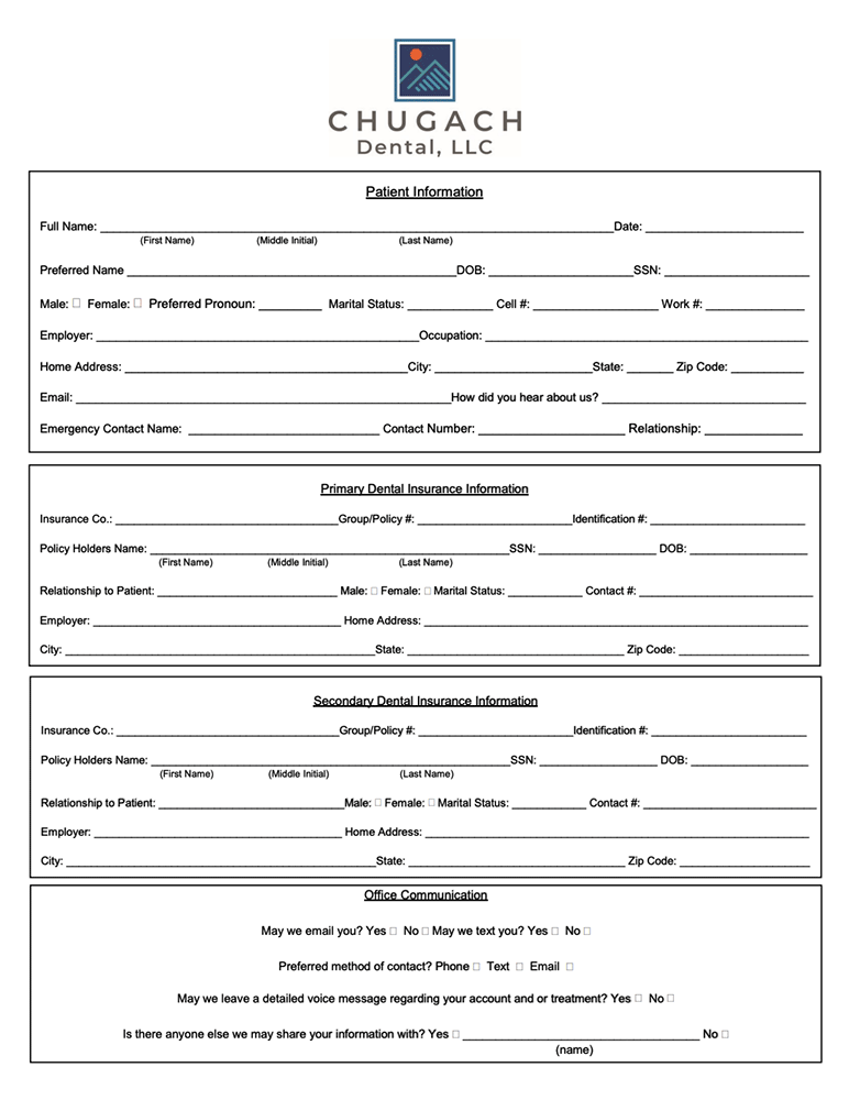 New to Chugach Dental? Download forms ahead of your visit and get to know our friendly team in Anchorage, AK serving our local community.